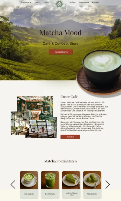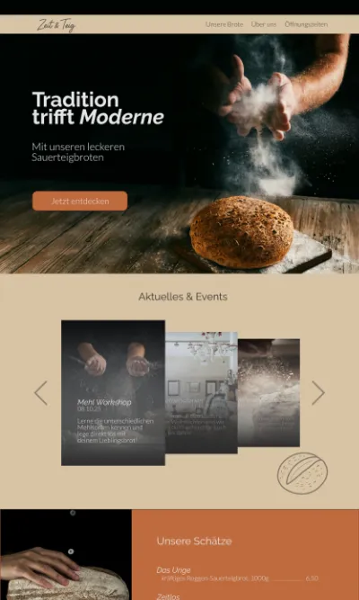 Seite mit deinen Texten, Fotos, Farben & Schriften. Den Entwurf